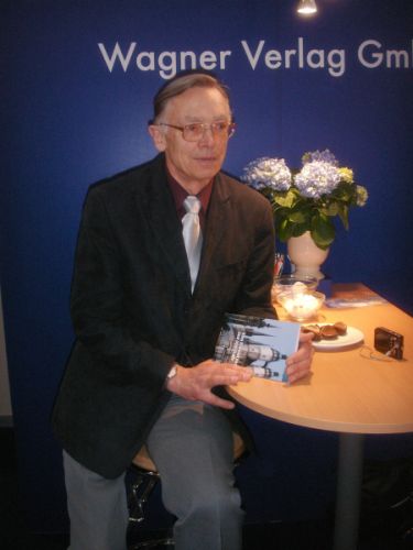 Lenz am Messestand des Wagnerverlages bei der Vorstellung seines neuen Buches.