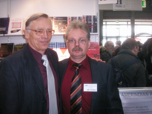 Lenz am Stand des Persimplex Verlages zusammen mit dem Chef des Hauses. |